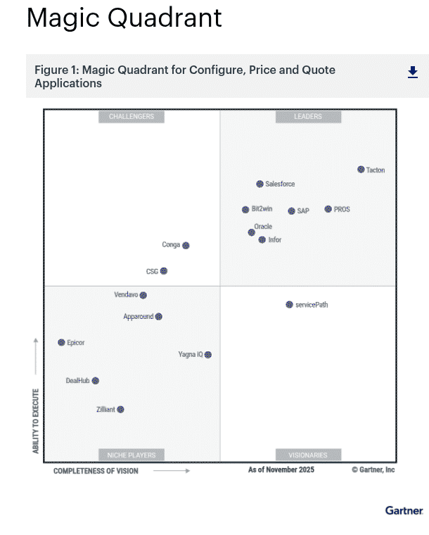 Анализ отчета Gartner Magic Quadrant for Configure, Price and Quote Applications (2026). 16 вендоров, 7 лидеров.